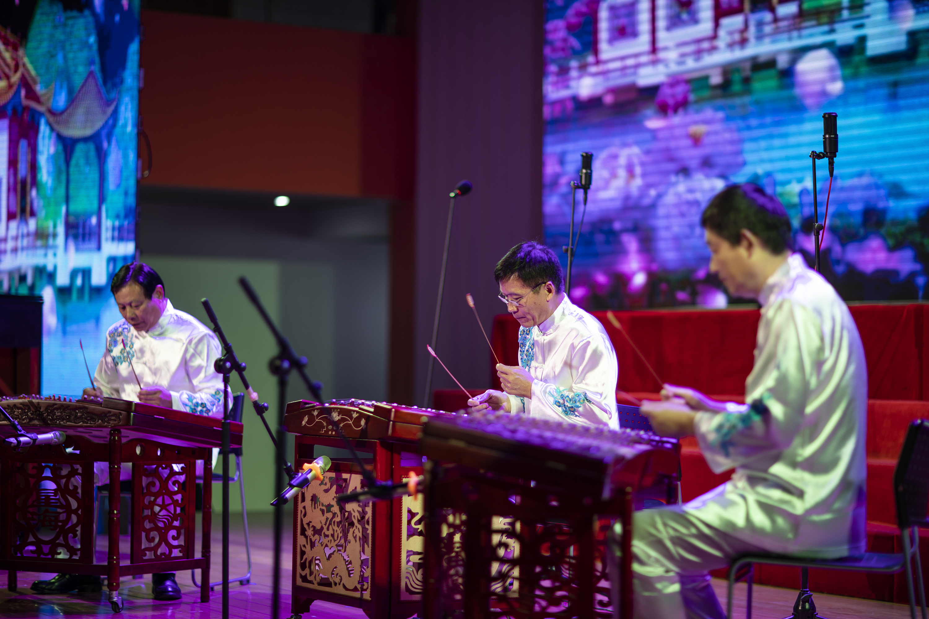 揚(yáng)琴合奏《眾手澆開幸福花》、《花好月圓》