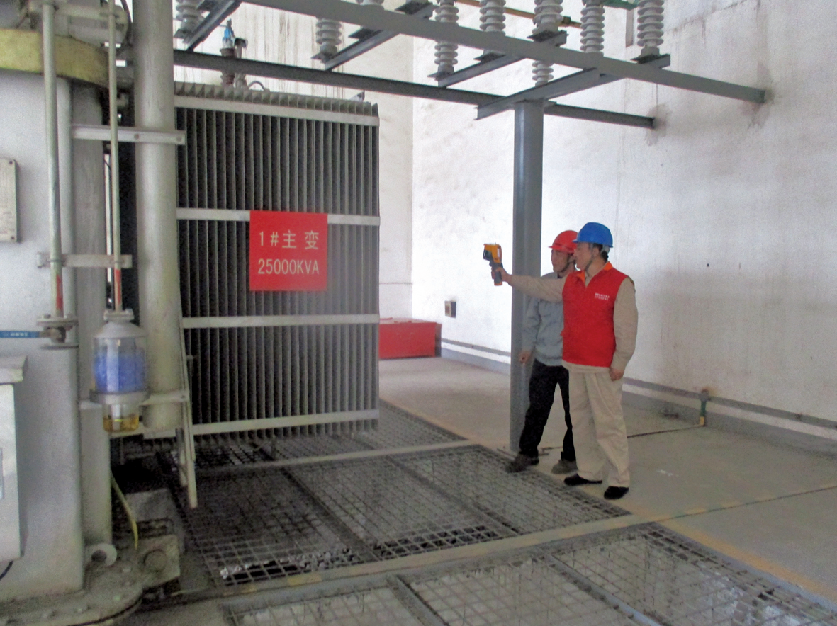 為確保帶電檢測工作的順利進行,杜絕人身、人為事故的發(fā)生,江農變電所所長對全站一二次設備運行情況及日常維護檢修工作進行了介紹。作業(yè)前,公司熱電人員對供電公司試驗人員進行了“帶電檢測工作前”的作業(yè)危險分析及注意事項培訓,并通過圖例針對各類帶電設備安全距離進行了分析。 培訓結束后,熱電分廠合理安排工作人員,確定工作負責人和專職監(jiān)護人,明確各級人員工作內容及職責,帶領“通電先鋒”服務隊人員進入現(xiàn)場。大家兵分三路,對1#主變、2#主變、35KV開關柜、110KVGIS等電氣設備進行了紅外測溫、局放、油色譜分析等帶電檢測工作,并對全站二次設備進行了狀態(tài)巡視、采樣檢查、回路檢測等工作,積極排查電氣設備隱患。
