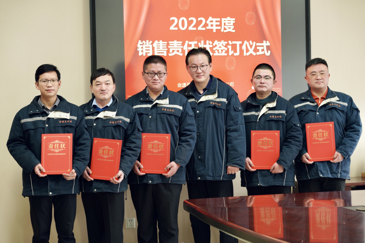 根據(jù)競(jìng)聘者的演講和答辯成績(jī),結(jié)合個(gè)人素質(zhì)的綜合評(píng)價(jià),壓縮機(jī)公司選拔出了最優(yōu)秀的銷售區(qū)域負(fù)責(zé)人。為確保完成公司2022年度戰(zhàn)略目標(biāo),競(jìng)聘成功的區(qū)域負(fù)責(zé)人與公司簽訂了責(zé)任狀。在大家雄心壯志的誓言里,我們看到了金通靈壓縮機(jī)營(yíng)銷鐵軍“使命必達(dá)”的勇氣和擔(dān)當(dāng)。