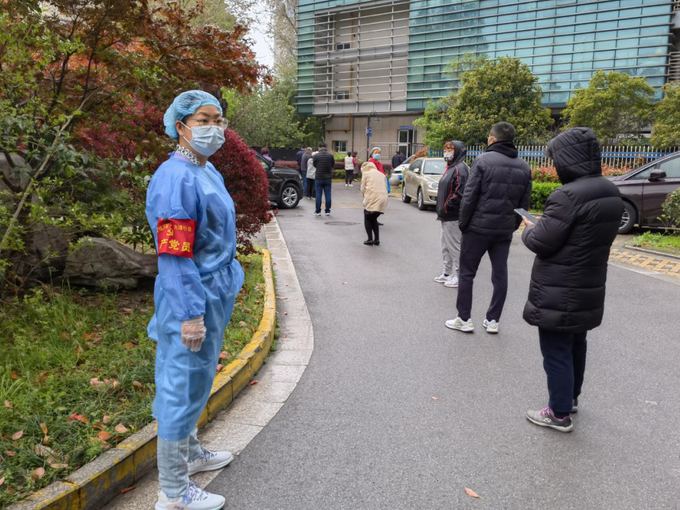 為確保疫情防控知識(shí)宣傳落實(shí)到位,國(guó)融公司綜合事務(wù)部主任袁莉,盡管身患糖尿病,仍主動(dòng)承擔(dān)起了紡織大廈疫情防控的任務(wù)。線上,她利用微信朋友圈、微信群等陣地及時(shí)轉(zhuǎn)發(fā)疫情防控權(quán)威信息,大力推進(jìn)防疫宣傳;線下,她連續(xù)值班值守,主動(dòng)參與起鳳社區(qū)卡口執(zhí)勤,服務(wù)三輪全員核酸檢測(cè),為全力撐起疫情防控“安全傘”貢獻(xiàn)力量。 在疫情防控工作中,資產(chǎn)經(jīng)營(yíng)部主任楊凌燕夫婦更是以辛苦付出贏得了一致認(rèn)可。她是支援起鳳社區(qū)的志愿者,身穿“大白”協(xié)助醫(yī)護(hù)人員進(jìn)行全民核酸檢測(cè);她是支援所在社區(qū)的急先鋒,維持秩序、引導(dǎo)群眾,盡心盡責(zé)。她的丈夫作為一名公務(wù)員也一起就地轉(zhuǎn)為志愿者,兢兢業(yè)業(yè)做著宣傳解釋疫情防控相關(guān)政策、服務(wù)全員核酸檢測(cè)等工作。楊凌燕說(shuō):“累是真的,但是能得到大家的認(rèn)可和贊揚(yáng),值了!” 下沉到社區(qū)的干部職工化身“大白”成為了協(xié)助做好核酸檢測(cè)的標(biāo)配。財(cái)務(wù)審計(jì)部副主任張煒第一次穿上全套“大白”支援起鳳社區(qū)核酸檢測(cè)后,就有了非常深刻的體會(huì)。4月12日下沉到所在社區(qū)后又一次穿起“大白”,四個(gè)多小時(shí)核酸檢測(cè)完,再回到家面對(duì)兩個(gè)孩子時(shí),她表示“電量?jī)H剩百分之一”。話語(yǔ)中,既有樂(lè)觀積極的心態(tài),更有對(duì)工作負(fù)責(zé)的堅(jiān)守和擔(dān)當(dāng)。