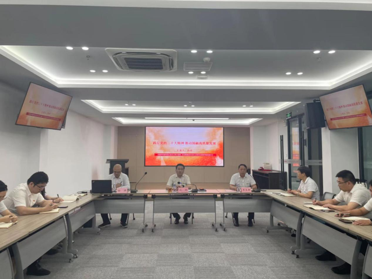 他指出,要抓實(shí)抓牢黨員干部的政治理論學(xué)習(xí),建設(shè)學(xué)習(xí)型黨組織。同時(shí),要加強(qiáng)公司內(nèi)部督查力度,建立內(nèi)審機(jī)制,通過經(jīng)常性、深入性的監(jiān)督檢查,確保各項(xiàng)工作任務(wù)不折不扣落到實(shí)處,加強(qiáng)黨建與經(jīng)營工作的融合,助推公司高質(zhì)量發(fā)展。 隨后,國融公司黨委委員、副總經(jīng)理孫濤以《踐行黨的二十大精神 推動(dòng)國融高質(zhì)量發(fā)展》為題,帶領(lǐng)公司黨員一起學(xué)習(xí)黨的二十大報(bào)告精髓,結(jié)合公司實(shí)際,從三方面與大家分享自己學(xué)習(xí)黨的二十大精神的體會(huì)與收獲,積極引導(dǎo)黨員干部堅(jiān)持學(xué)習(xí)、堅(jiān)定信心、奮勇前行,攜手共譜國融公司新篇章。