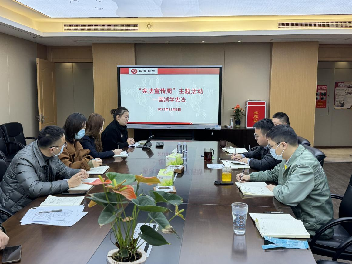 12月8日上午,在第十個國家憲法日來臨之際,南通國潤融資租賃有限公司圍繞“大力弘揚憲法精神,建設社會主義法治文化”主題,組織開展“憲法宣傳周——國潤學憲法”專題活動。為作好本次法律宣傳活動,公司領導高度重視,組織召開專題會議,向全體員工宣導中央宣傳部、司法部、全國普法辦聯(lián)合印發(fā)的《2023年全國“憲法宣傳周”工作方案》,同時對如何開展好此次活動進行了部署。公司還邀請法律顧問單位——北京盈科(南通)律師事務所的繆姝姝律師,就憲法相關知識作了專題講座,公司全體員工參會。