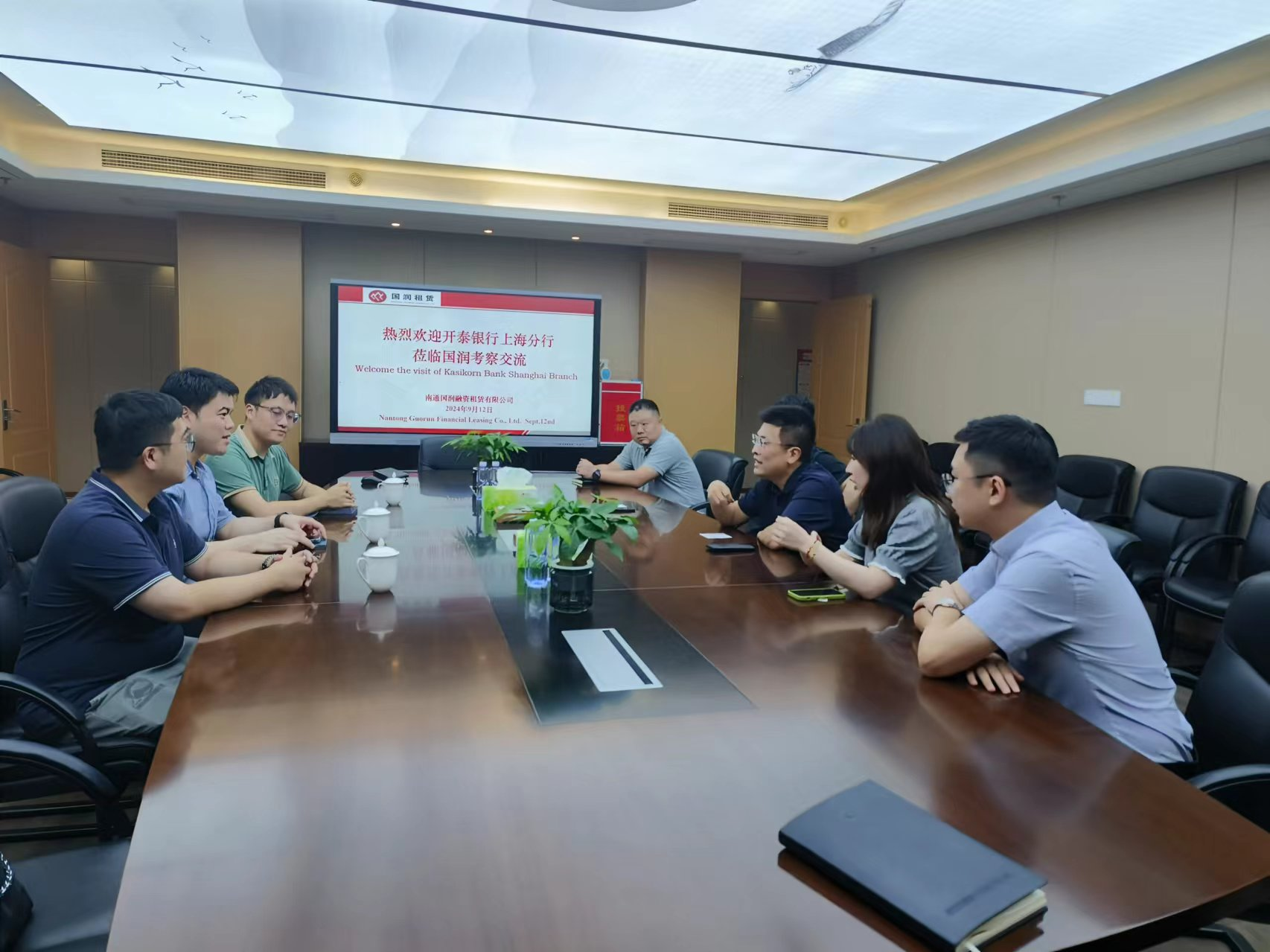 9月12日,開泰銀行上海分行行長Ukrit Archapairoj一行人到國潤租賃開展業(yè)務(wù)交流,國潤租賃陳大鵬及相關(guān)人員參加了交流座談。